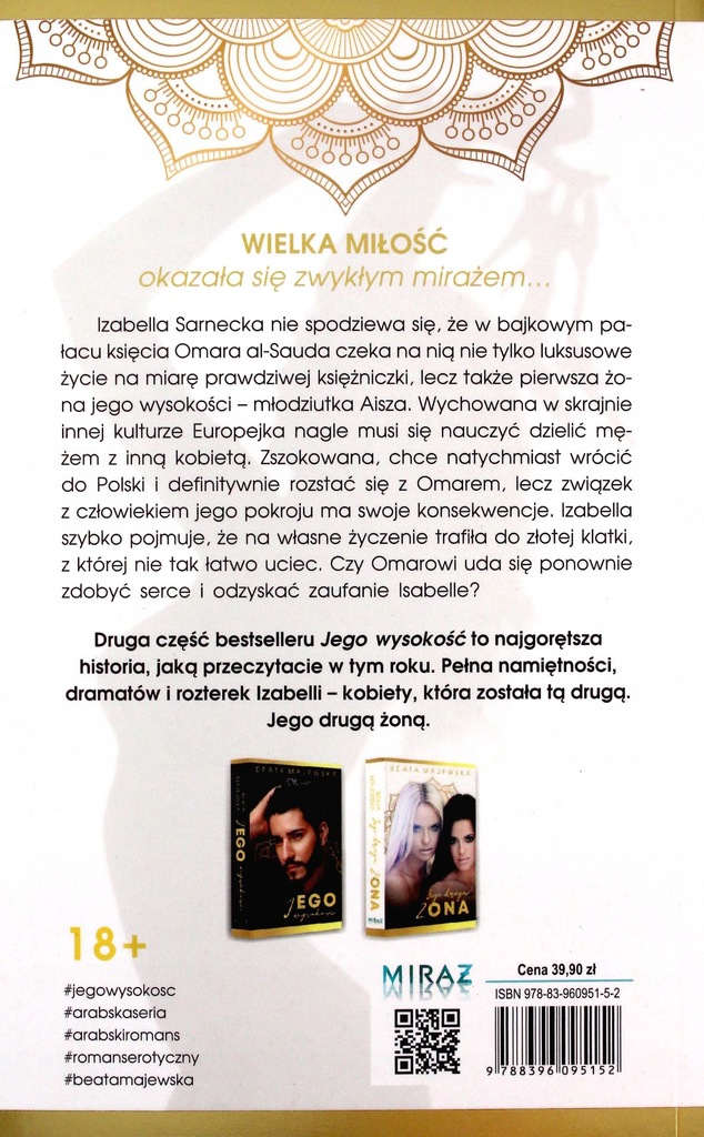 Izabella Sarnecka nie spodziewa się, że w bajkowym pałacu księcia Omara Al-Sauda czeka na nią nie tylko luksusowe życie na miarę prawdziwej księżniczki, lecz także pierwsza żona jego wysokości - młodziutka Aisza. Wychowana w skrajnie innej kulturze Europejka nagle musi się nauczyć dzielić mężem z inną kobietą. Zszokowana, chce natychmiast wrócić do Polski i definitywnie rozstać się z Omarem, lecz związek z człowiekiem jego pokroju ma swoje konsekwencje. Izabella szybko pojmuje, że na własne życzenie trafiła do złotej klatki, z której nie tak łatwo uciec. Czy Omarowi uda się ponownie zdobyć serce i odzyskać zaufanie Isabelle?