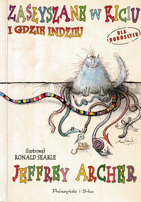 Dla miłośników błyskotliwych opowiadań z dreszczykiem, przekomicznych rysunków oraz ... kotów. "Zasłyszane w kiciu i gdzie indziej" to piąty zbiór opowiadań Jeffreya Archera, wzbogacony o ilustracje popularnego rysownika Ronalda Searle`a. Dziewięć spośród dwunastu prezentowanych w nim historii Archer usłyszał w więzieniu, do którego trafił na dwa lata za składanie fałszywych zeznań. Inspiracją do napisania pozostałych trzech były historie, które wpadły Archerowi w ucho już po wyjściu na wolność: "Grecka tragedia" - w Atenach, "Mądrość Salomona" - w Londynie i "Piękno jest w oku patrzącego" - w Rzymie. Każda z tych opowieści - choć ubarwiona przez autora - oparta jest na prawdziwym zdarzeniu. We wszystkich splatają się dowcipne, błyskotliwe, czasem smutne wątki. We wszystkich występują szalone, groźne, ale i wzruszające postaci, które odnaleźć można także na zabawnych rysunkach kotów.